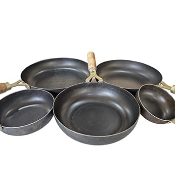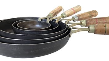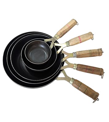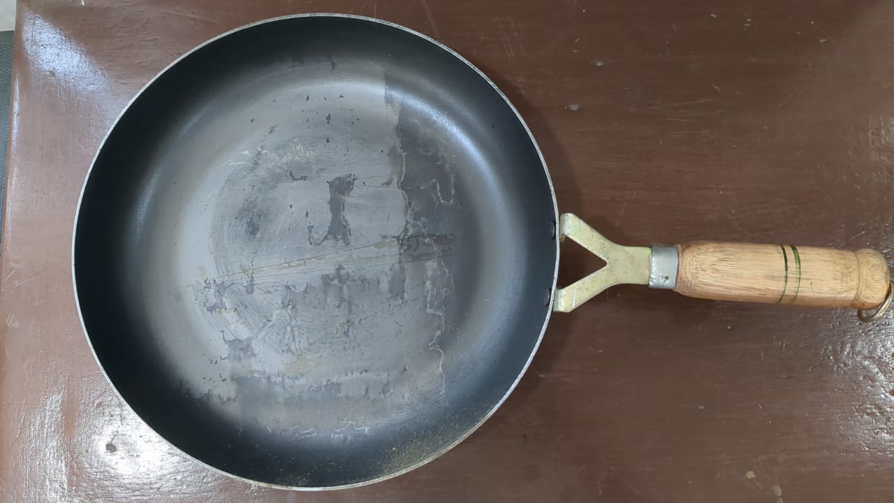 This sheet iron tawa has Bakelite handles. This is perfect for Rotis, Parathas, Omlette, Fish fry etc