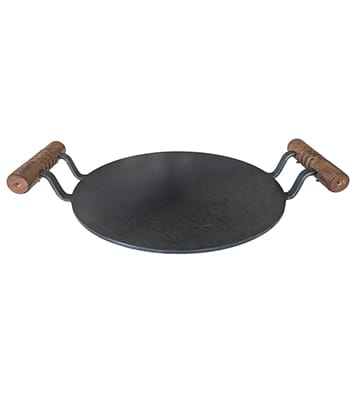This sheet iron tawa has Bakelite handles. This is perfect for Rotis, Parathas, Omlette, Fish fry etc
